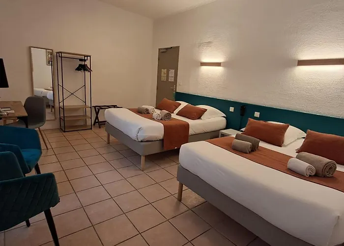 Het centrum van Orange kan worden bereikt binnen 15 minuten lopen van dit hotel, en culturele locaties zoals Musée Mémoire de la Nationale 7 liggen op 3 km verderop. Colline Saint-Eutrope is op afstand van 2 km tot deze accommodatie met 3 sterren gesitueerd. Er is de bushalte Le Bayle direct aan dit hotel in Orange.